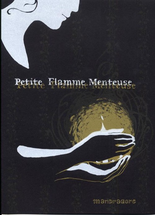 Fiction dans le Paris fin XIXème tel que le photographiait Eugène Atget. Gabriel, jeune dandy maladif, et Île, petite prostituée lunatique, errent du Marché des Halles à la Butte aux Cailles, jusqu'à franchir les fortifications et découvrir ce que déjà on dénommait "la zone". Après avoir détruit son passé, Île embarque Gabriel dans son rêve, qui vire bientôt au cauchemar. "Petite flamme menteuse" constitue le second opus du diptyque La rue sans nom. Comme dans "Notre Dame de l'Oubli", le premier volet, Mandragore a glissé dans ses pages des citations graphiques et littéraires renvoyant à Schwob, Valloton, Richepin... (des références et notices leur sont réservées à la fin de l'ouvrage).