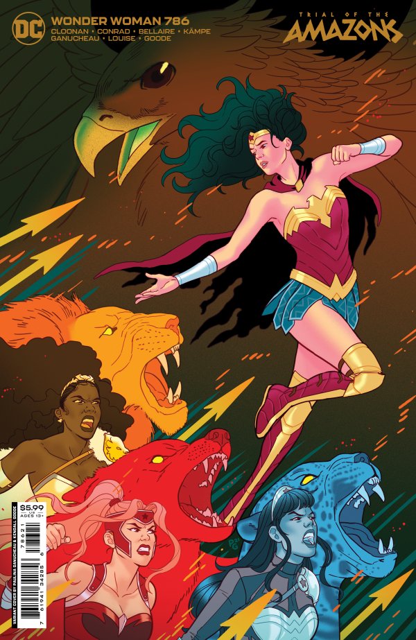 “Trial of the Amazons” part five! Tensions rise as the tribes compete with one another to determine the future of the Amazons. But a lot more than just glory is on the line—immortality is too! Little do they know, someone is pulling everyone’s strings from behind Doom’s Doorway. Who could it be? Find out in this jam-packed issue!