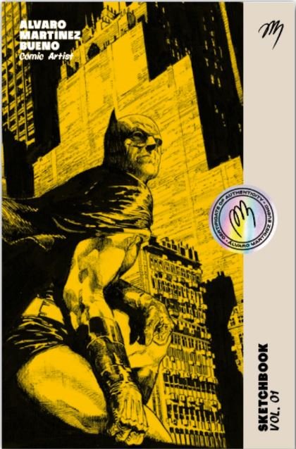/// Primera edición del Sketchbook Vol. 1 de Álvaro Martínez Bueno. Edición limitada de 500 ejemplares. Numerados a mano, firmados y con pegatina COA. 60 páginas, en color y en blanco y negro, con un recorrido por algunos de sus encargos más recientes y algunas commissions inéditas. Tapa trasera de cartón rígido, reforzada con pegamento y cinta de tela negra, como los cuadernos de bocetos “de toda la vida”.