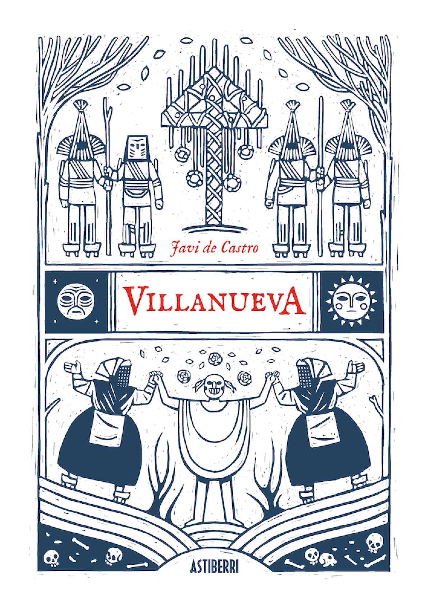 Miguel y Ana son jóvenes, tienen deudas y esperan un bebé. Un pequeño pueblo que ofrece alojamientos gratuitos parece su salvación. El folclore leonés y el terror se cruzan en esta historia de supervivencia ambientada en la España vaciada. Javi de Castro ha recogido los elementos canónicos del subgénero de terror conocido como “folk horror”, típicos del cine británico, para llevarlos a la meseta española cediendo el protagonismo a los verdugos. En palabras de Javi de Castro, “lo primero es que el género me encanta, 'The Wicker Man', 'La garra de Satán', 'Midsommar'..., pero es que además España, y más concretamente la región leonesa, a la que pertenezco, está plagada de tradiciones ancestrales: el antruejo y sus personajes, el ramo leonés, los hombres musgo de Béjar, los Mayos... Muchas cosas que se ven en aquellas películas las he visto yo desde niño, y para este cómic he querido aprovecharlas y crear mi propia mitología basada en esa realidad”. Villanueva ―el topónimo más común de España, con 132 localidades homónimas― es el idílico marco en el que se desarrolla esta historia de terror rural sobre las relaciones tóxicas y la importancia de la amistad.