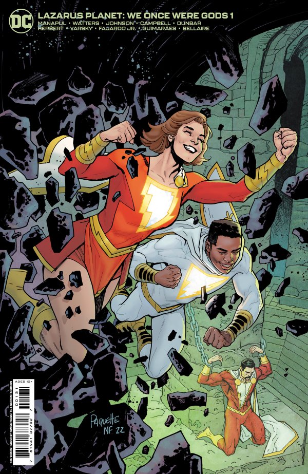 As the Lazarus rain beats down upon planet Earth, human beings are only a fraction of those affected by this transformative upheaval--enter: We Once Were Gods. This series of vignettes explores Lazarus Planet's effects across the many extraordinary locations and creatures in the DC Universe, and like their human counterparts, these beings are in for some big changes. Can Themyscira survive the resurrection of every invading army that ever graced its shores? Will Martian Manhunter survive a psychic link to a Doomsday nest? What happens when the monsters from the Trench gain the ability to breathe air? And look out, Shazam Family...the Rock of Eternity is about to get rocked.