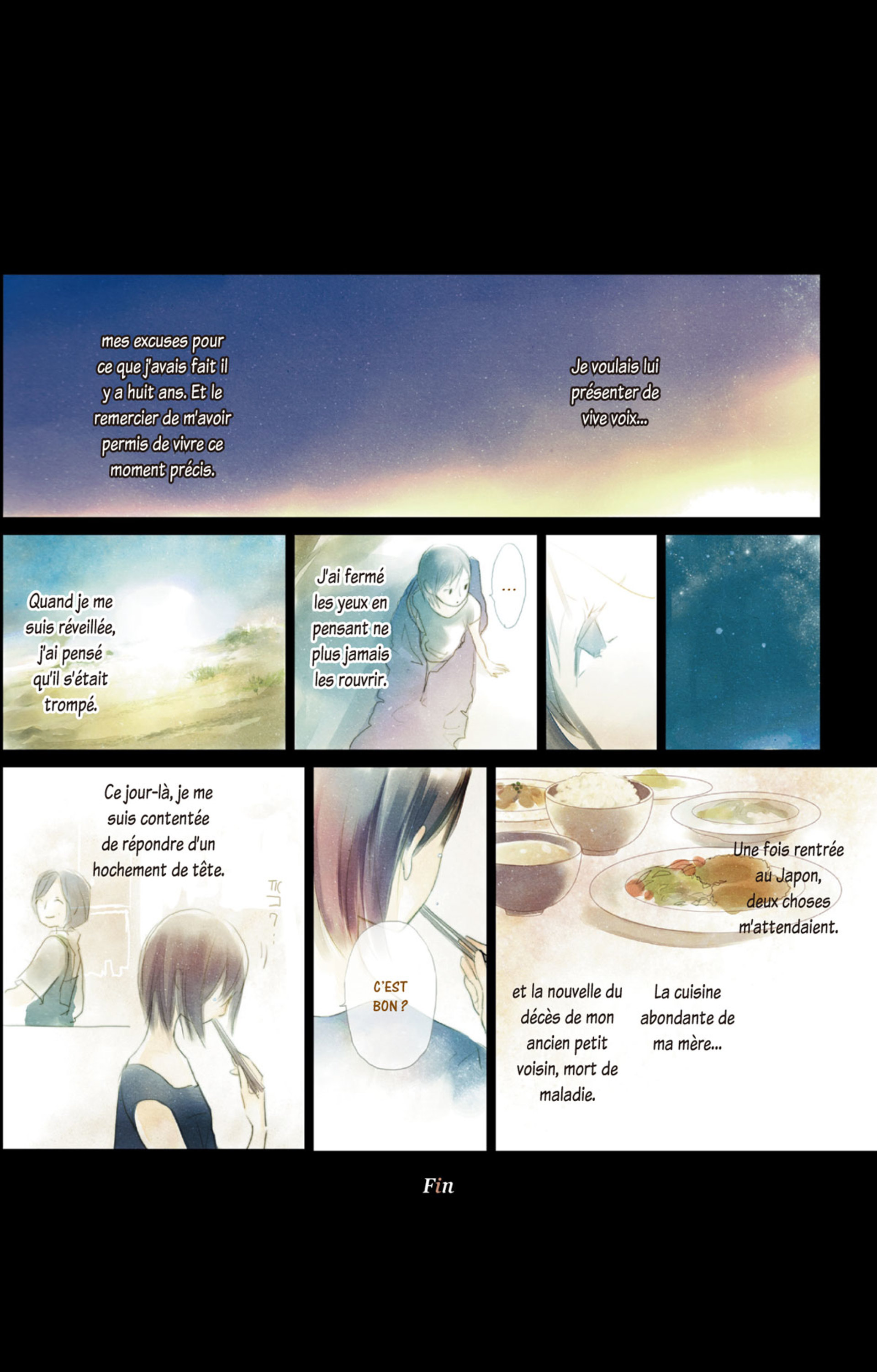 Personnellement je suis tombée tout à fait par hasard sur ce one shot. Certes certaines fins sont brutales mais je pense que c'est ce qui fait le plus. Des histoires à vous arrachez une petite larme...